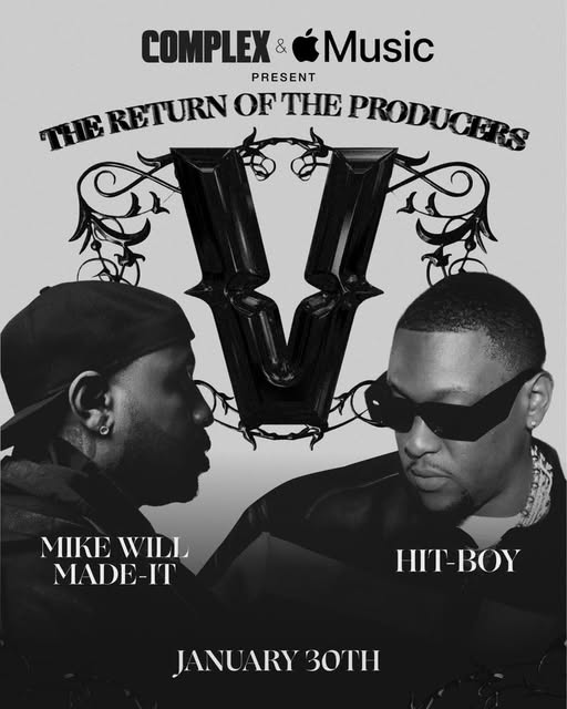 Two heavyweight producers are stepping into the spotlight. Mike Will Made-It and Hit-Boy will go head-to-head in an upcoming Verzuz showdown on January 30 at 5 PM PT. Presented by Complex in collaboration with Apple Music, the event will stream live from the Apple Music studios in Los Angeles via Apple Music. The stage is set — are you ready for the clash?